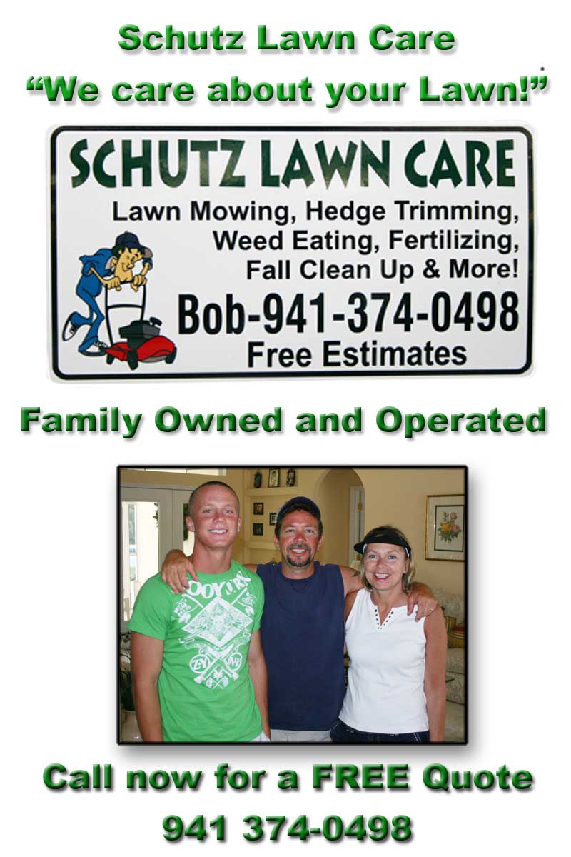 Schutz Lawn Care has been servicing the NorthPort FL/North Port area since 2003. We use care not to run over lawn sprinkler heads. We also not just cut the grass, we style it creating nice patterns as we cut or we mean "style" your lawn